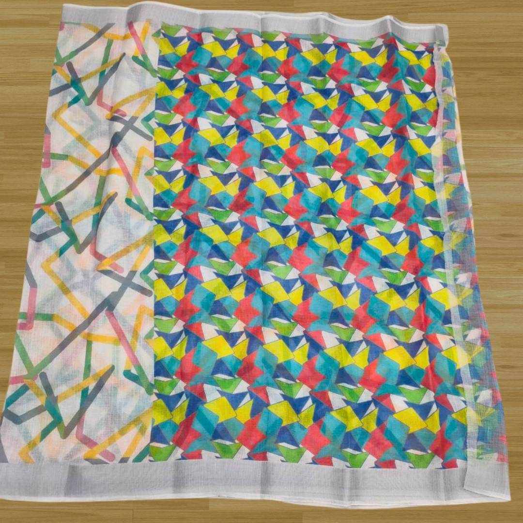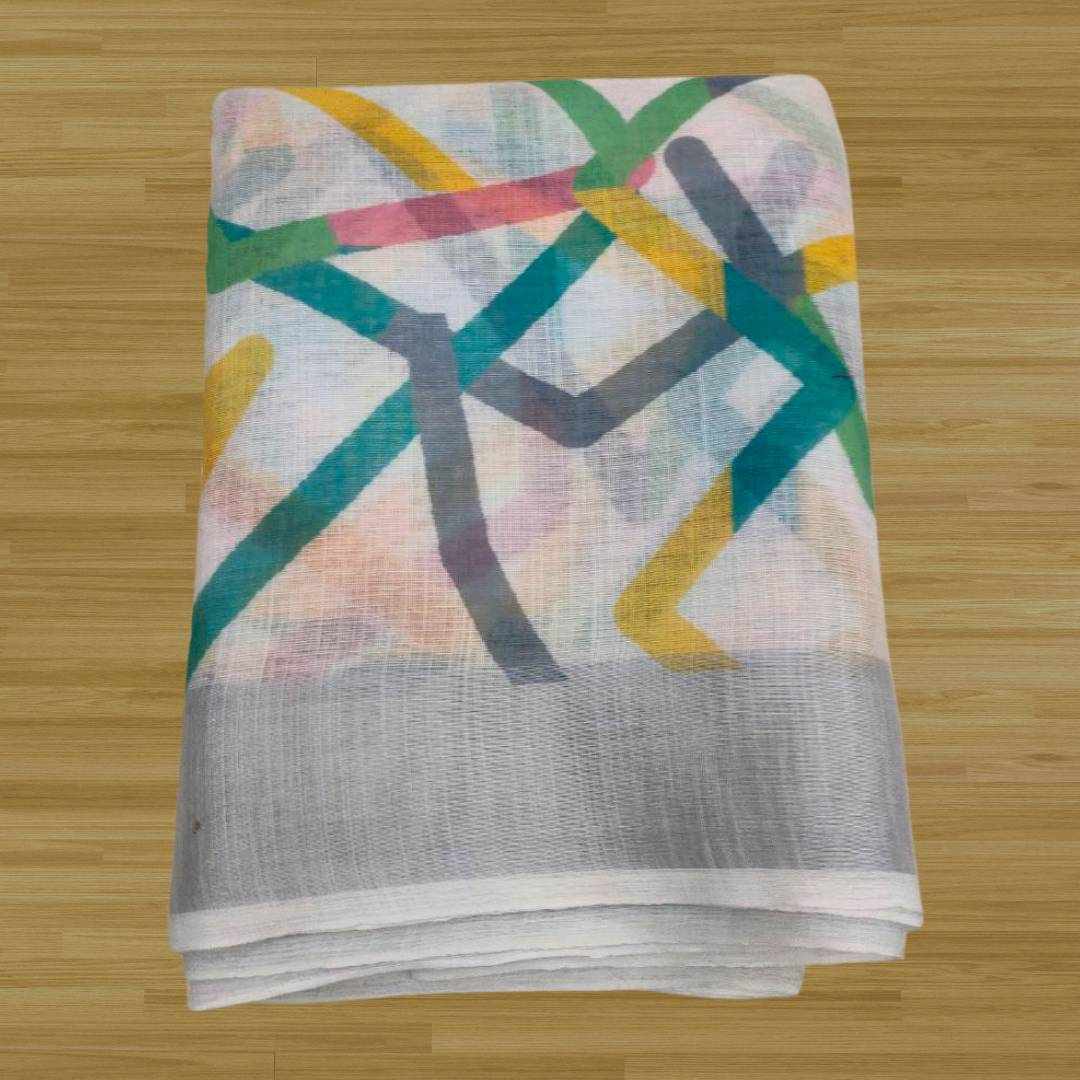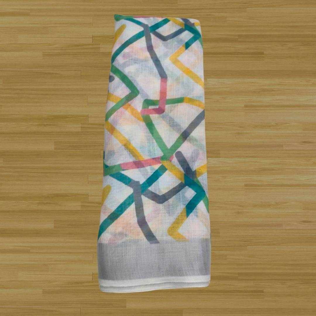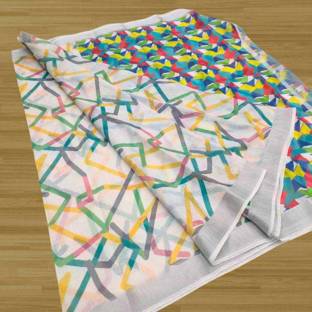 S4S Linen White ZigZag Cotton Saree