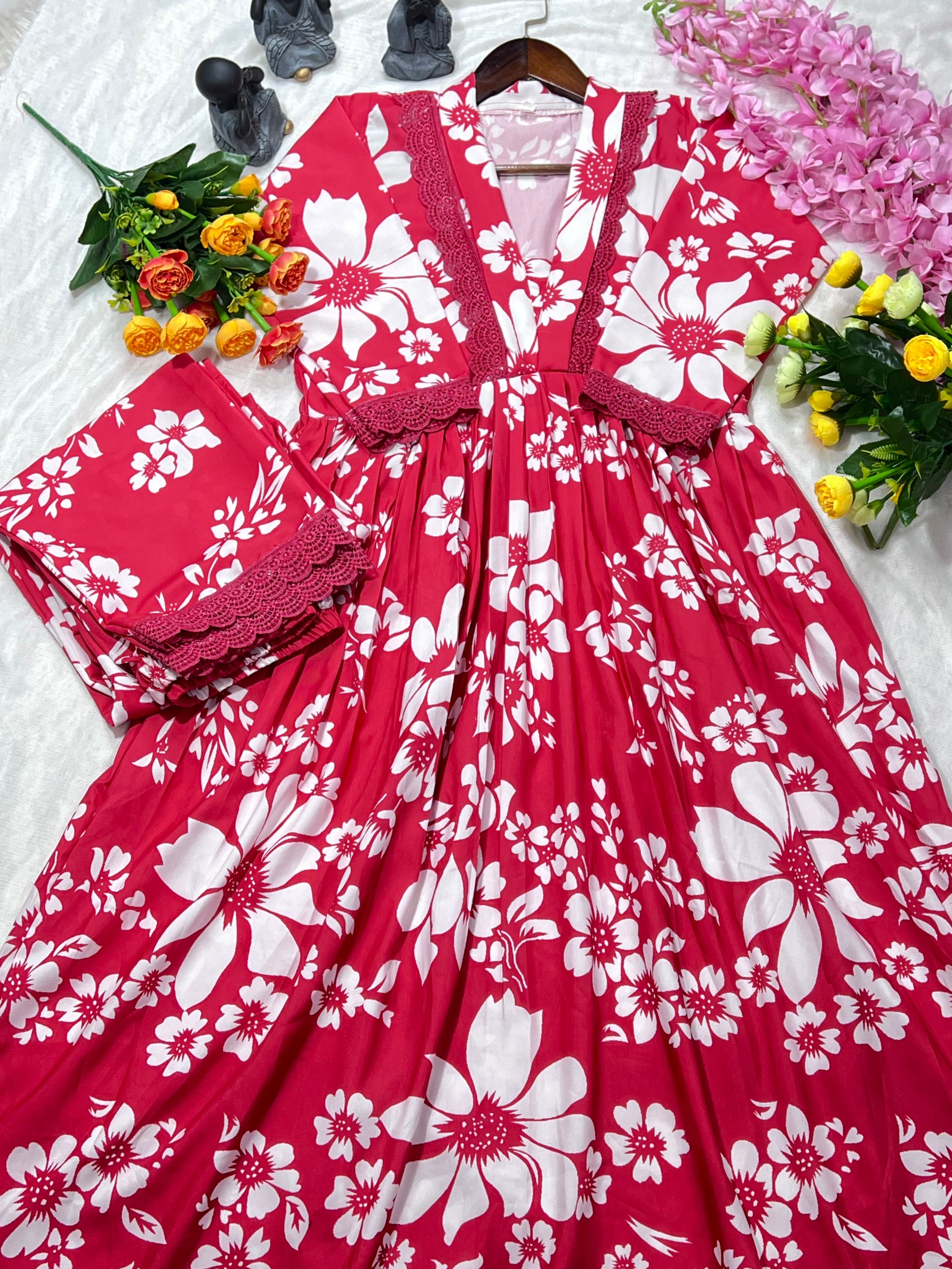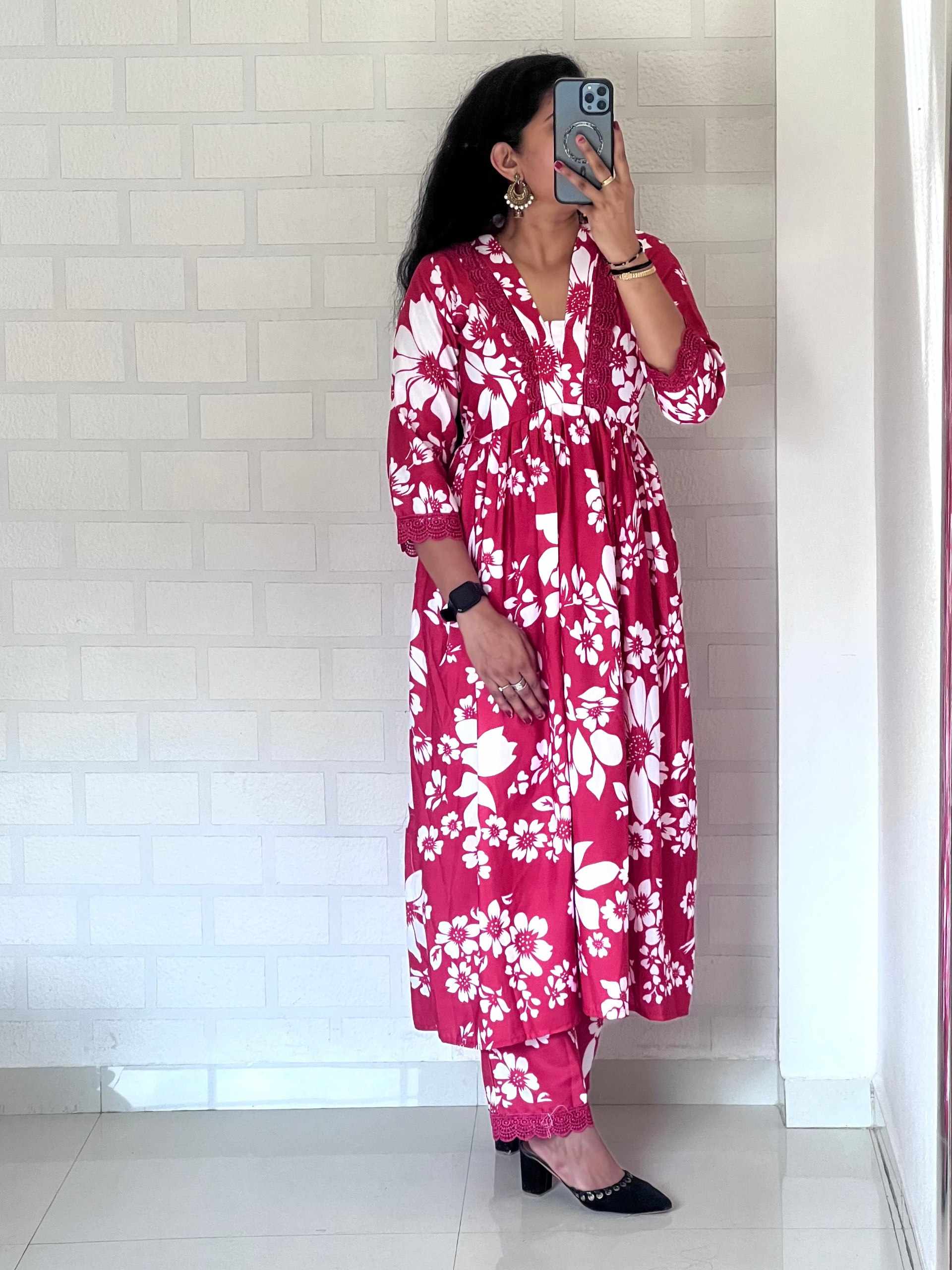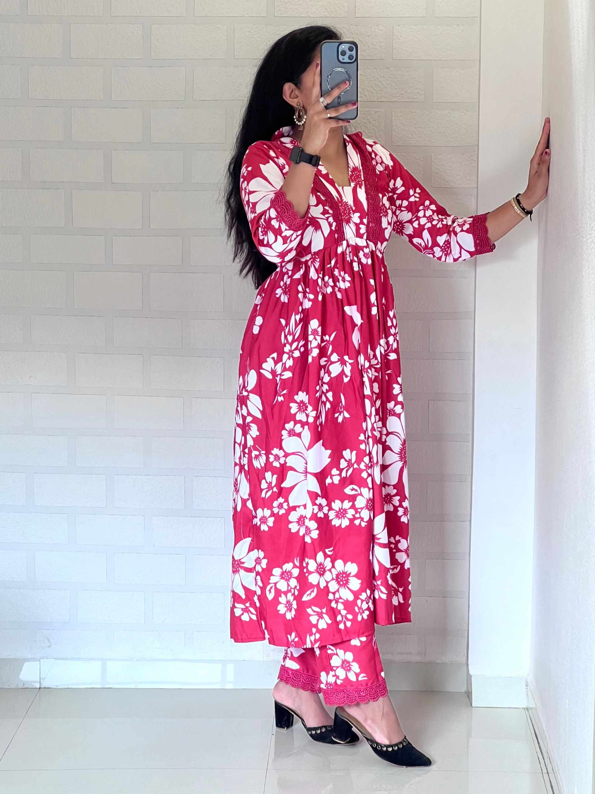 JKWH 997 Pure Fine Cotton Febric Embroidery Work A-line Kurti Set With Pocket