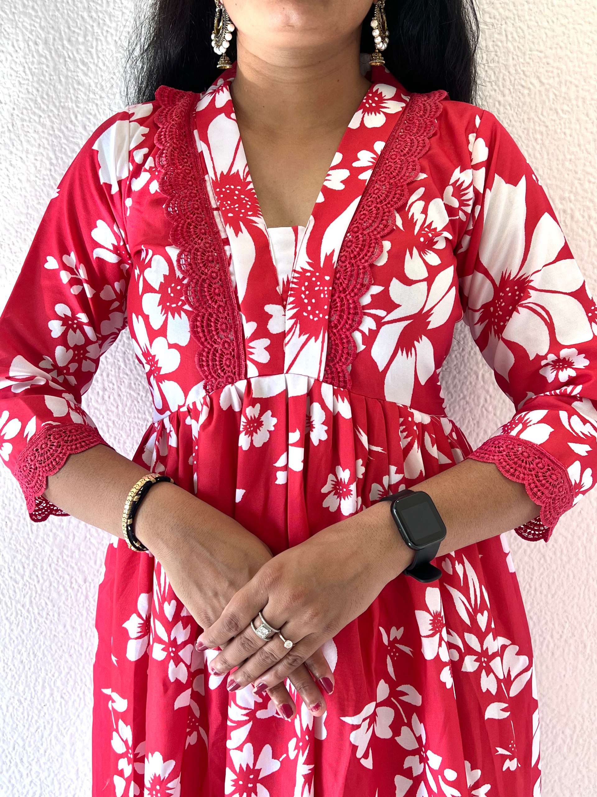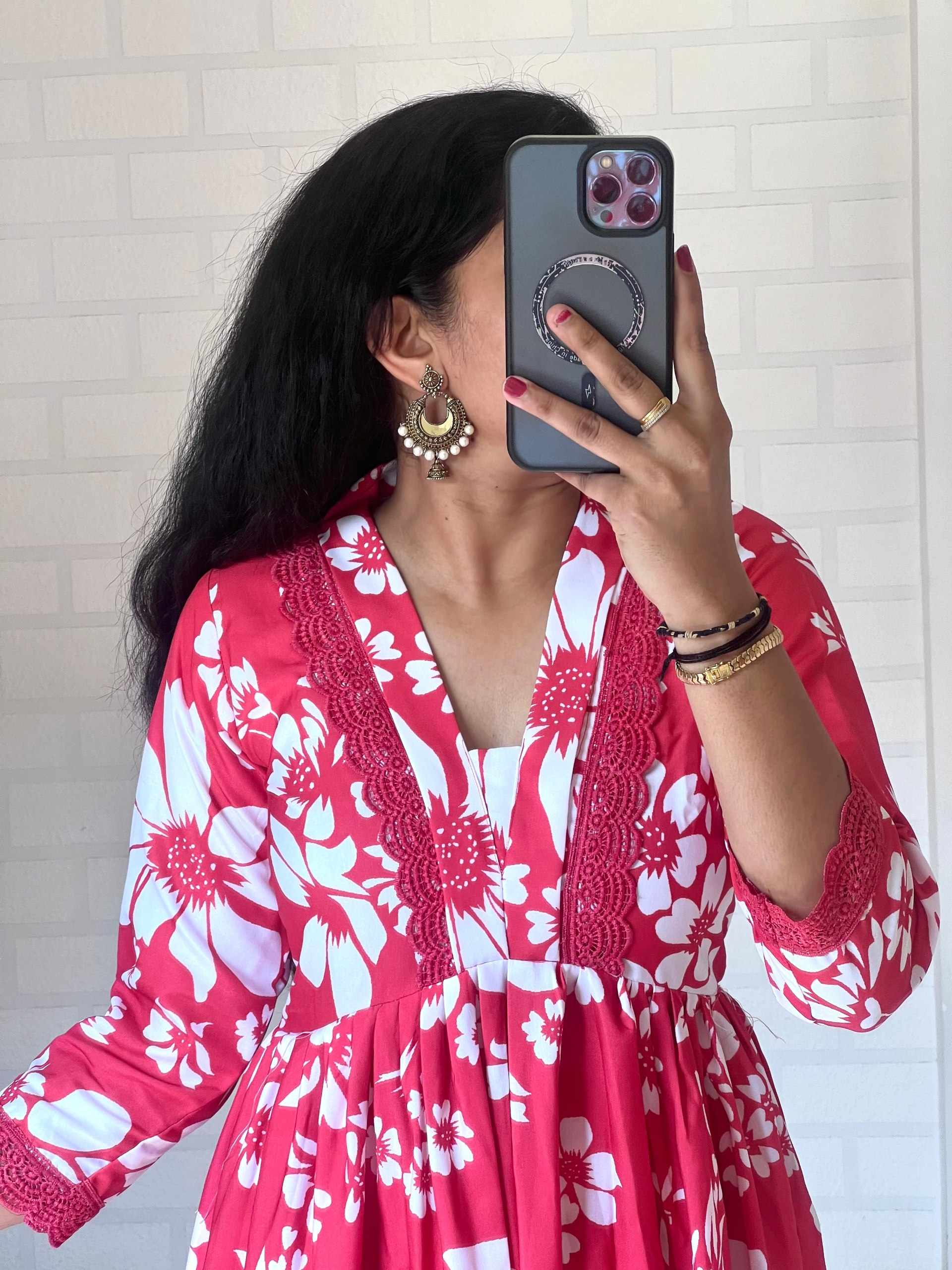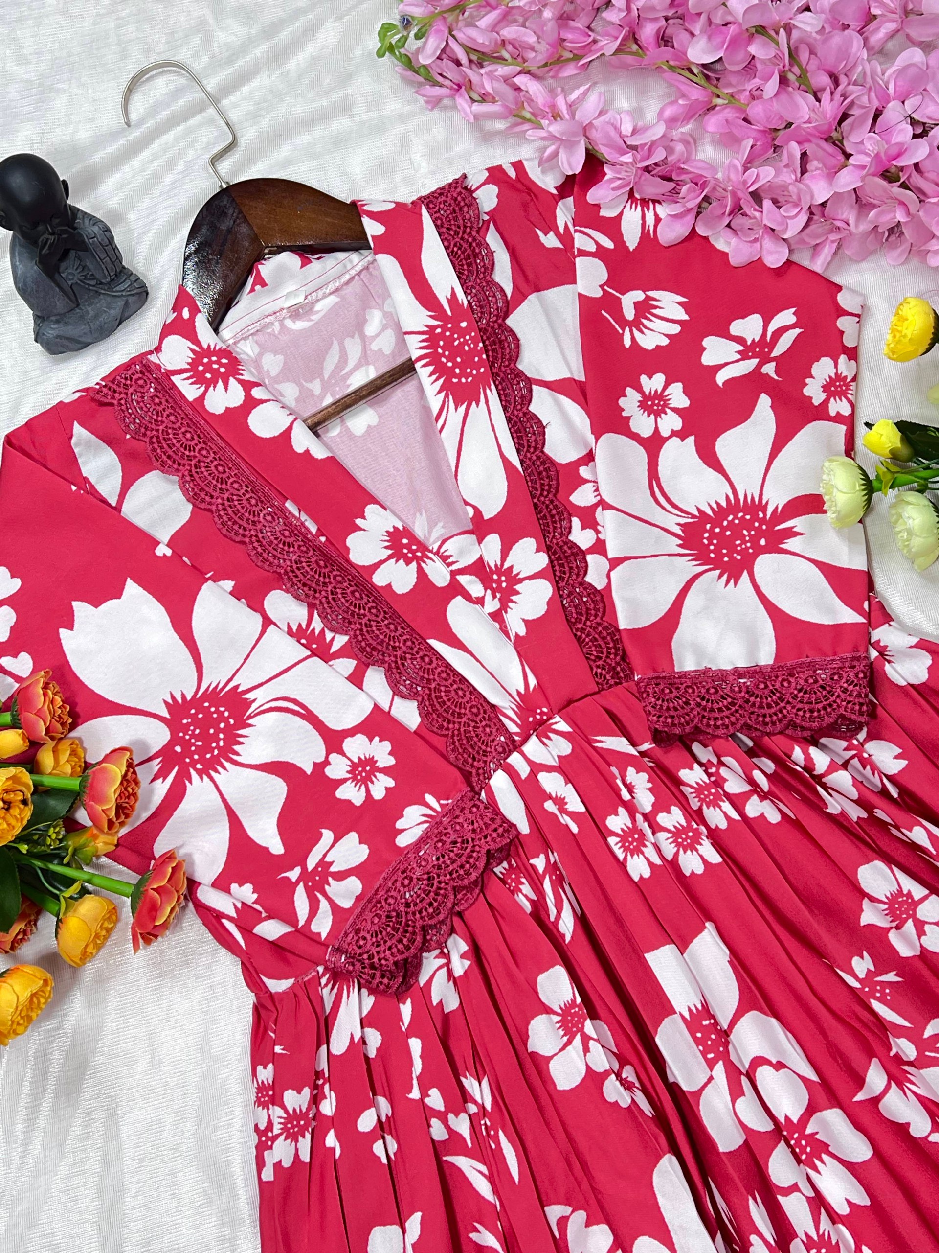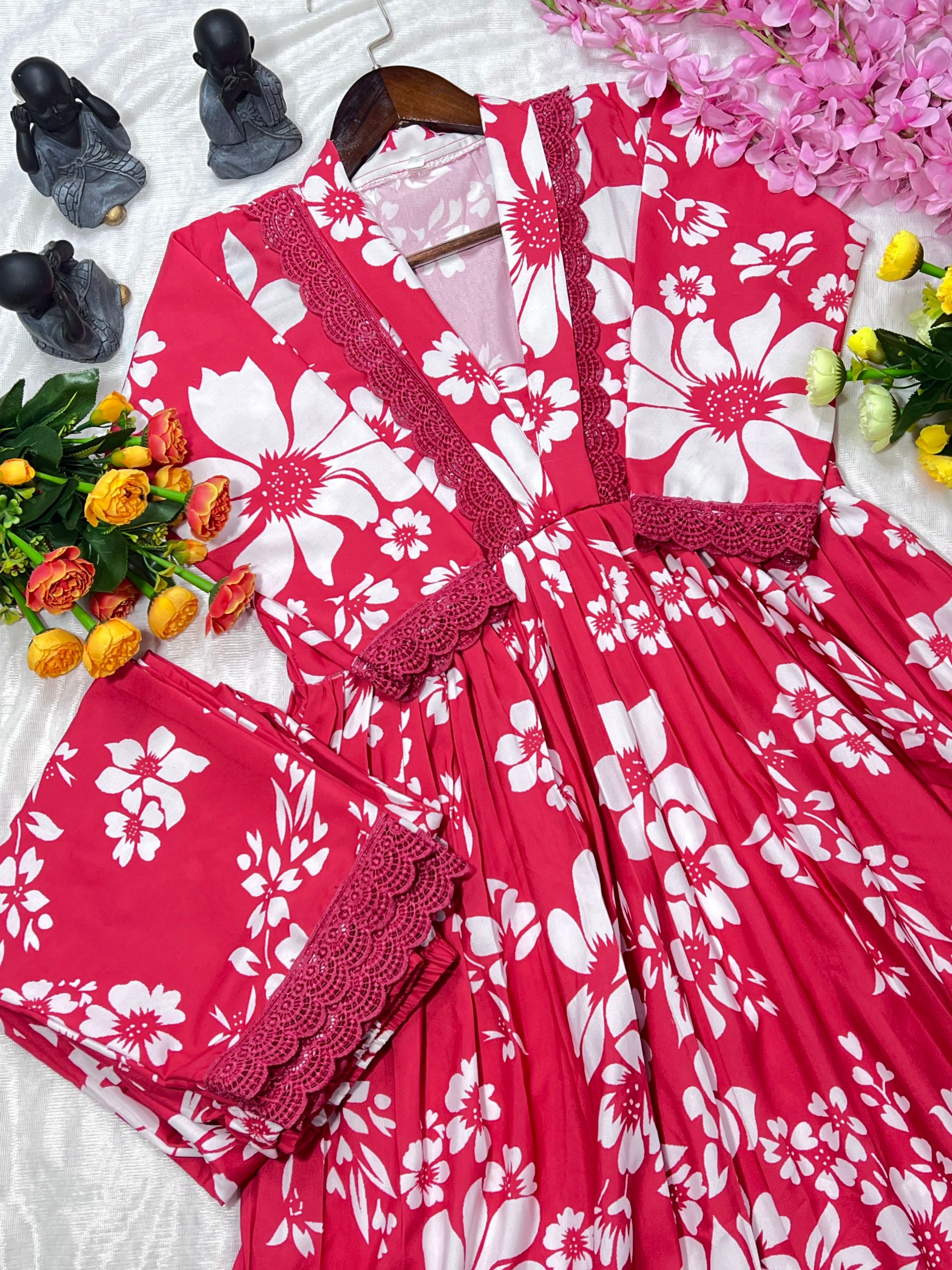 JKWH 997 Pure Fine Cotton Febric Embroidery Work A-line Kurti Set With Pocket