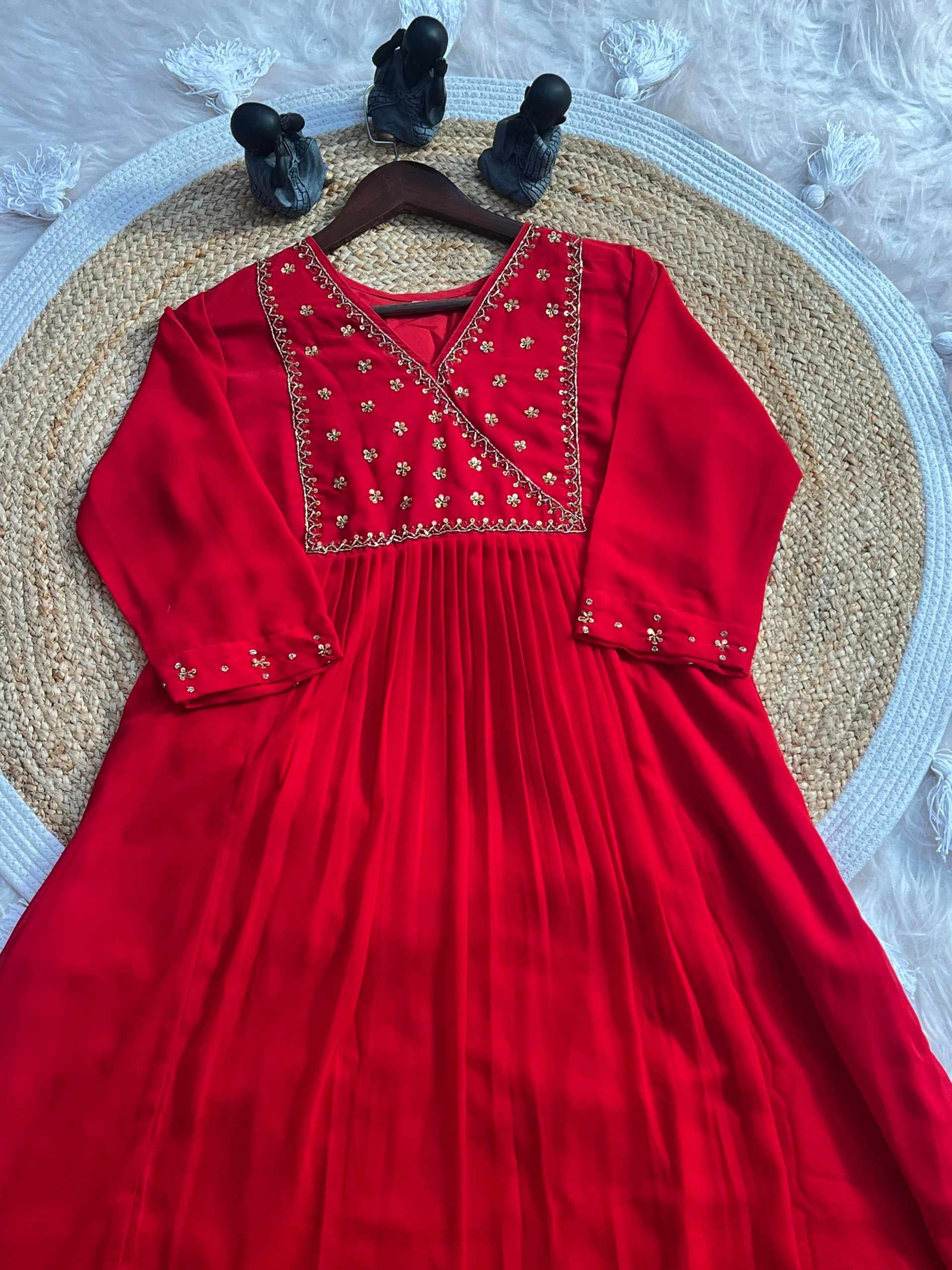 WM12 RED BLOOMING GEORGETTE BEAUTIFUL HANDWORK KURTI